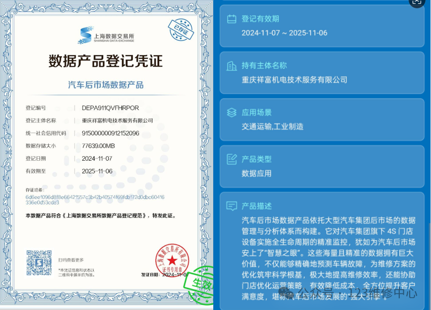 它如同汽车后市场的“智慧之眼”,既能精确预测车辆故障,优化维修方案,提升维修效率;又能助力门店洞察运营数据,优化策略、降低成本,提升客户满意度。这份权威认证的数据资产,将数据转化为汽车后市场发展的核心驱动力,让“数据变现”成为现实。